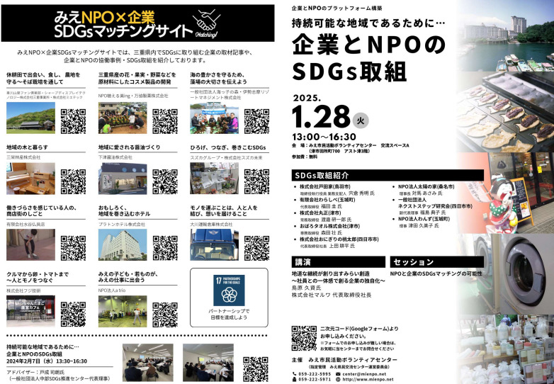 みえ市民活動ボランティアセンター様主催のイベント「企業とNPOのSDGs取組2024~持続可能な地域であるために…」に参加させて頂きました。