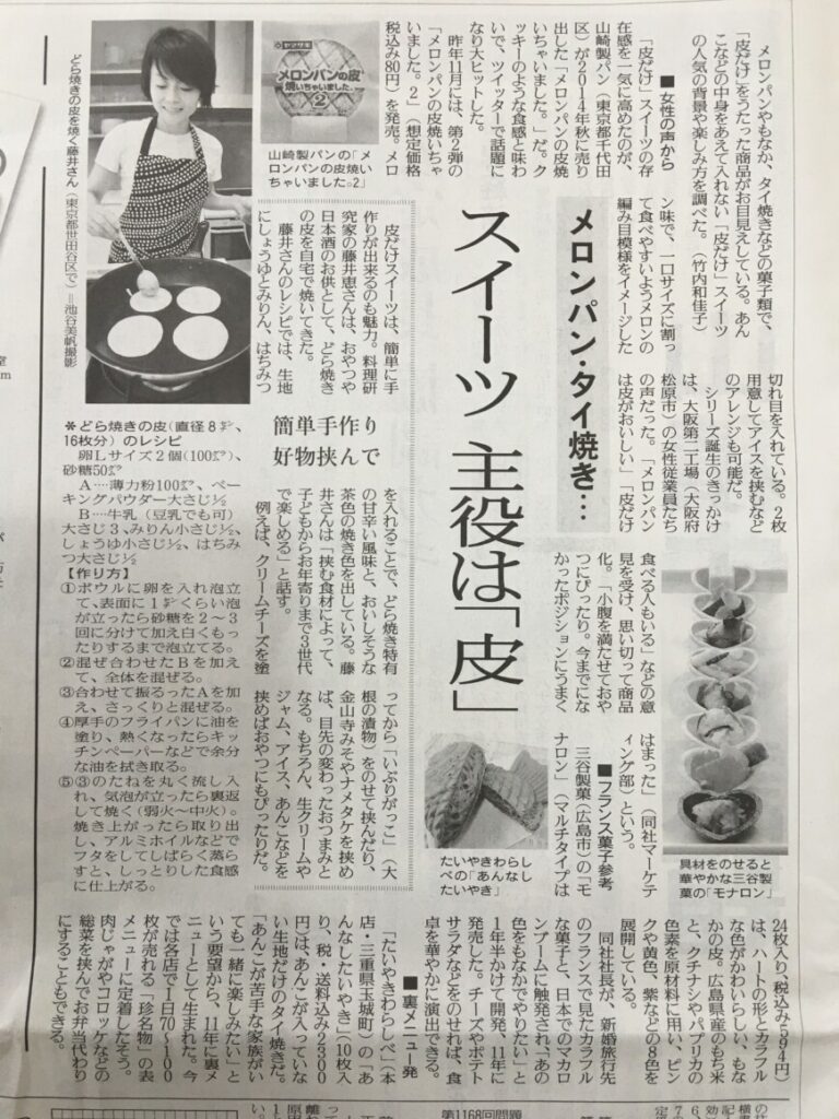 読売新聞 全国版 メロンパン・たい焼き… スイーツ主役は「皮」に取材いただきました。